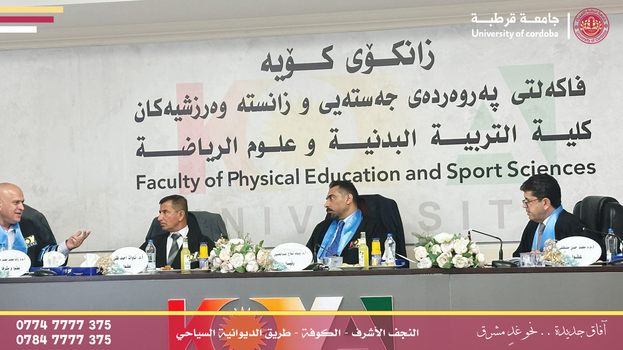 ترأس الأستاذ الدكتور وسام صلاح عبد الحسين المحترمً، رئيس جامعة قرطبة، لجنة مناقشة رسالة الماجستير للطالبة [خه رمان شكر ابو بكر ] في كلية التربية البدنية وعلوم الرياضة بجامعة كوية.