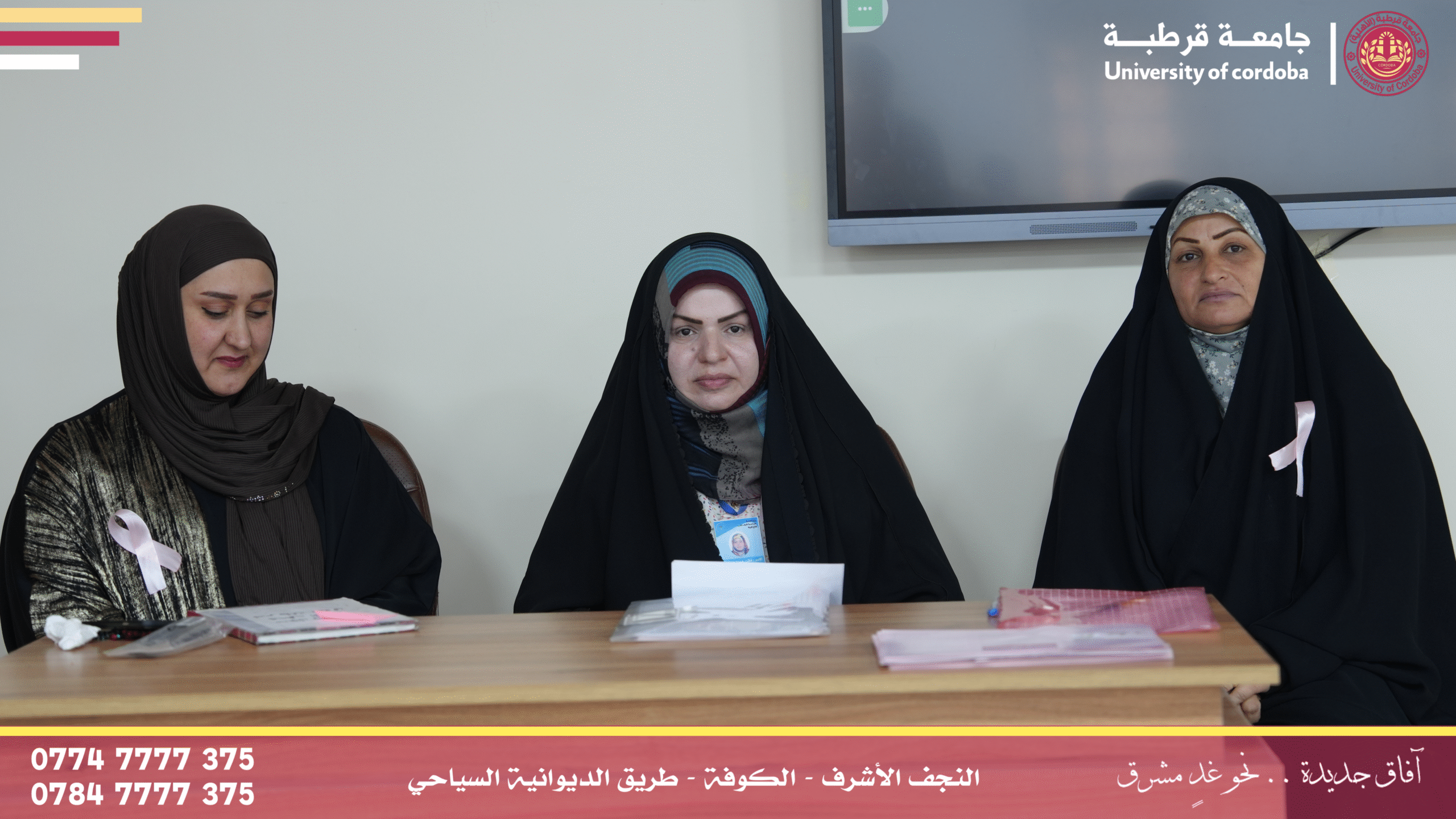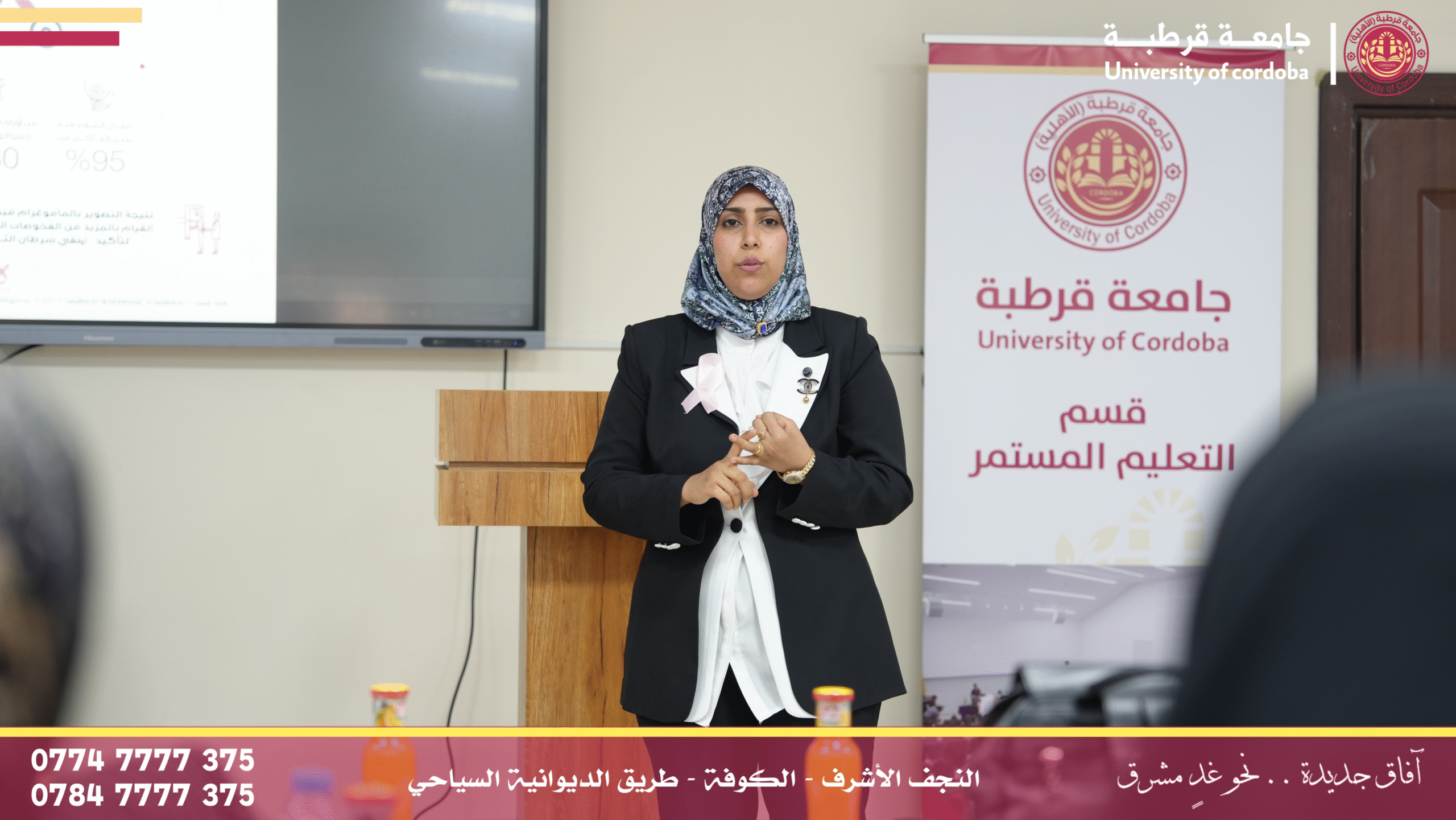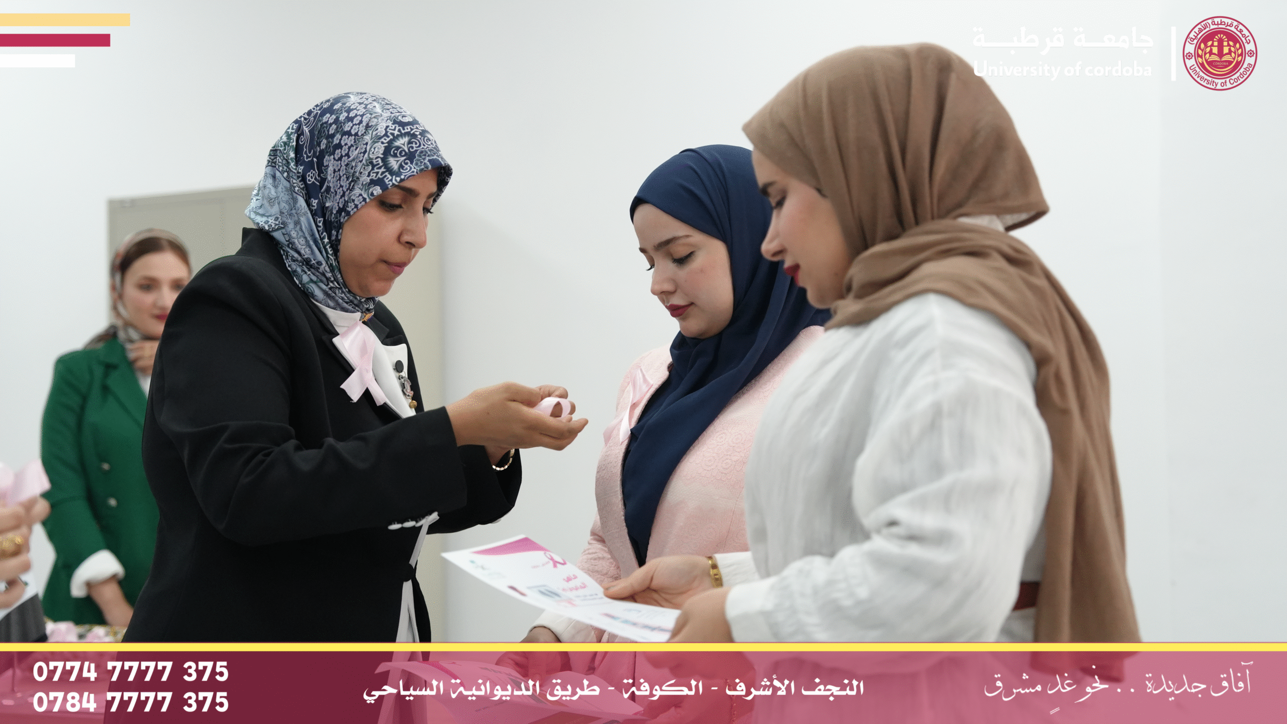 نظمت شعبة شؤون المرأة في جامعة قرطبة الأهلية ندوة علمية تثقيفية بعنوان “دور الفحص المبكر للوقاية من سرطان الثديي”، بالتعاون مع شعبة الإرشاد النفسي، وبرعاية الأستاذ الدكتور وسام صلاح عبدالحسين المحترم رئيس الجامعة .