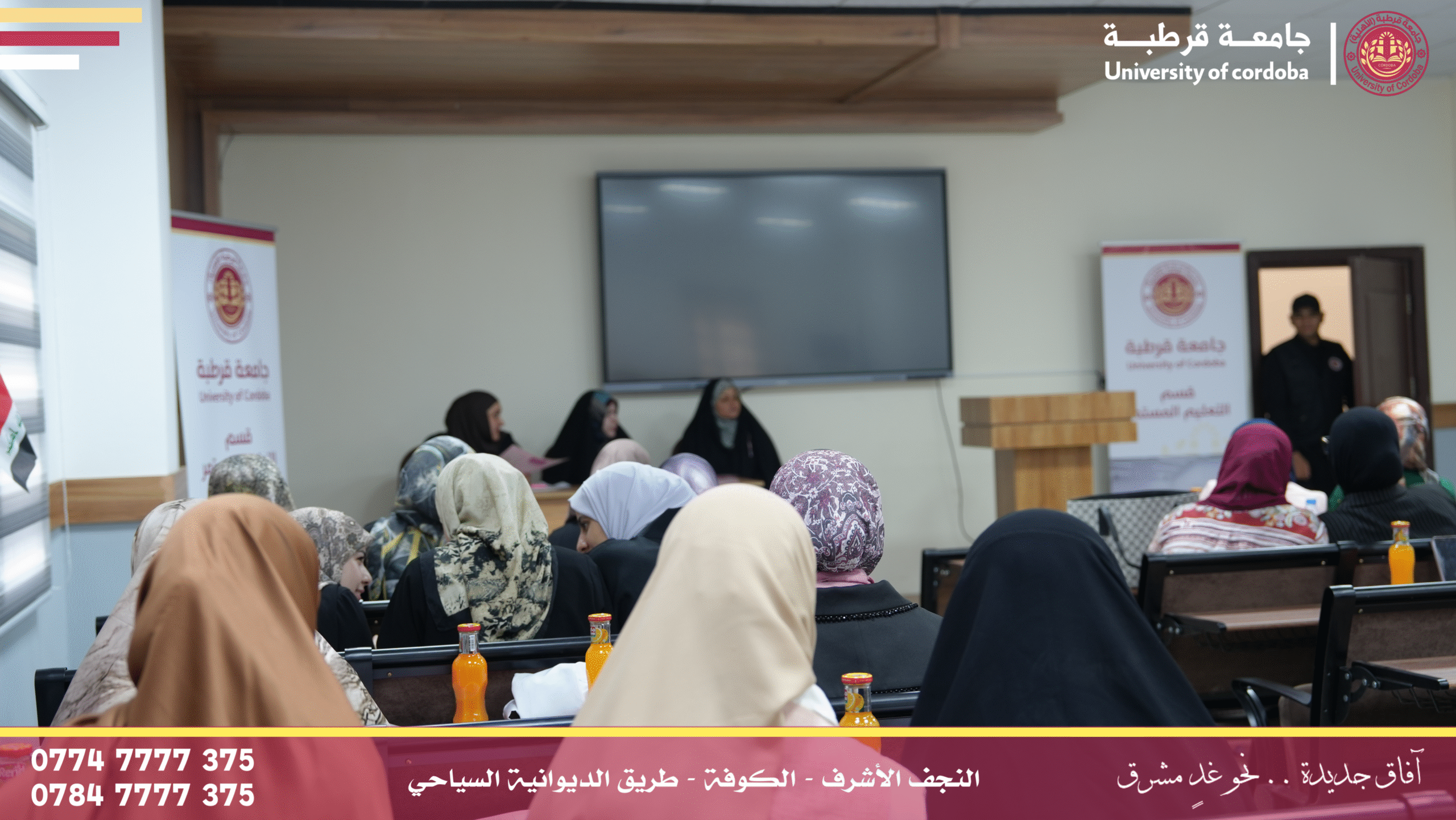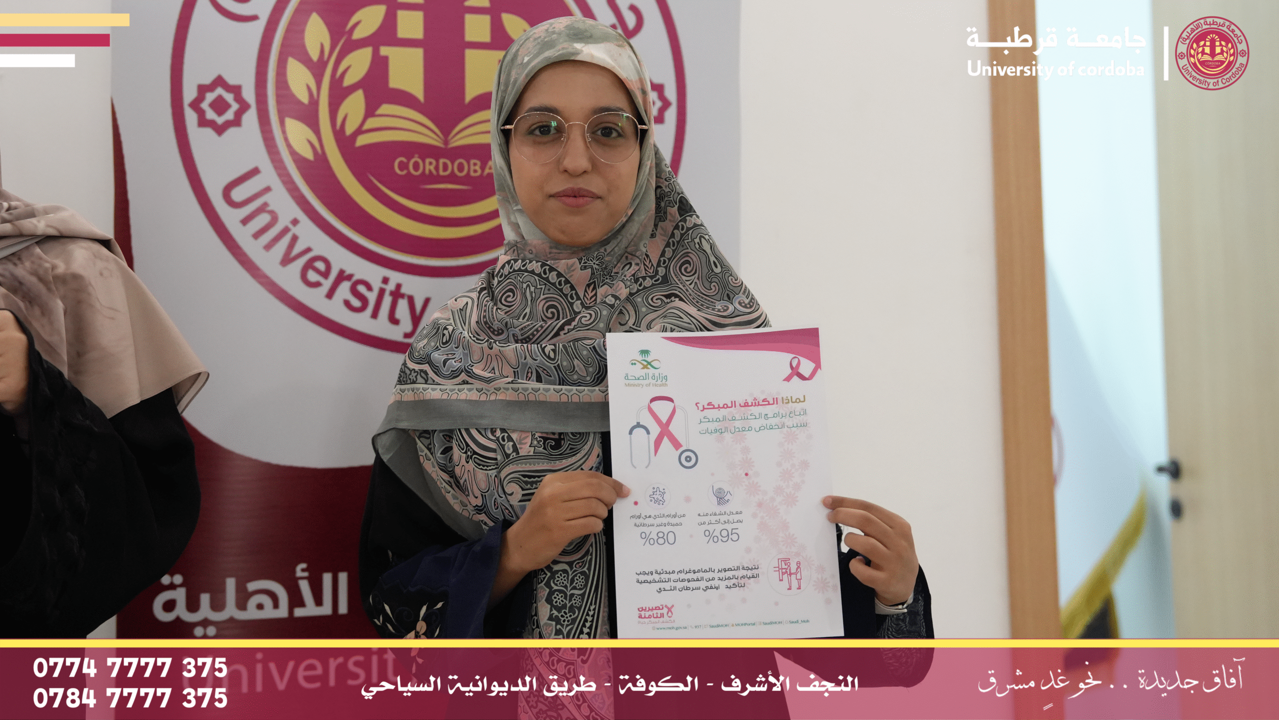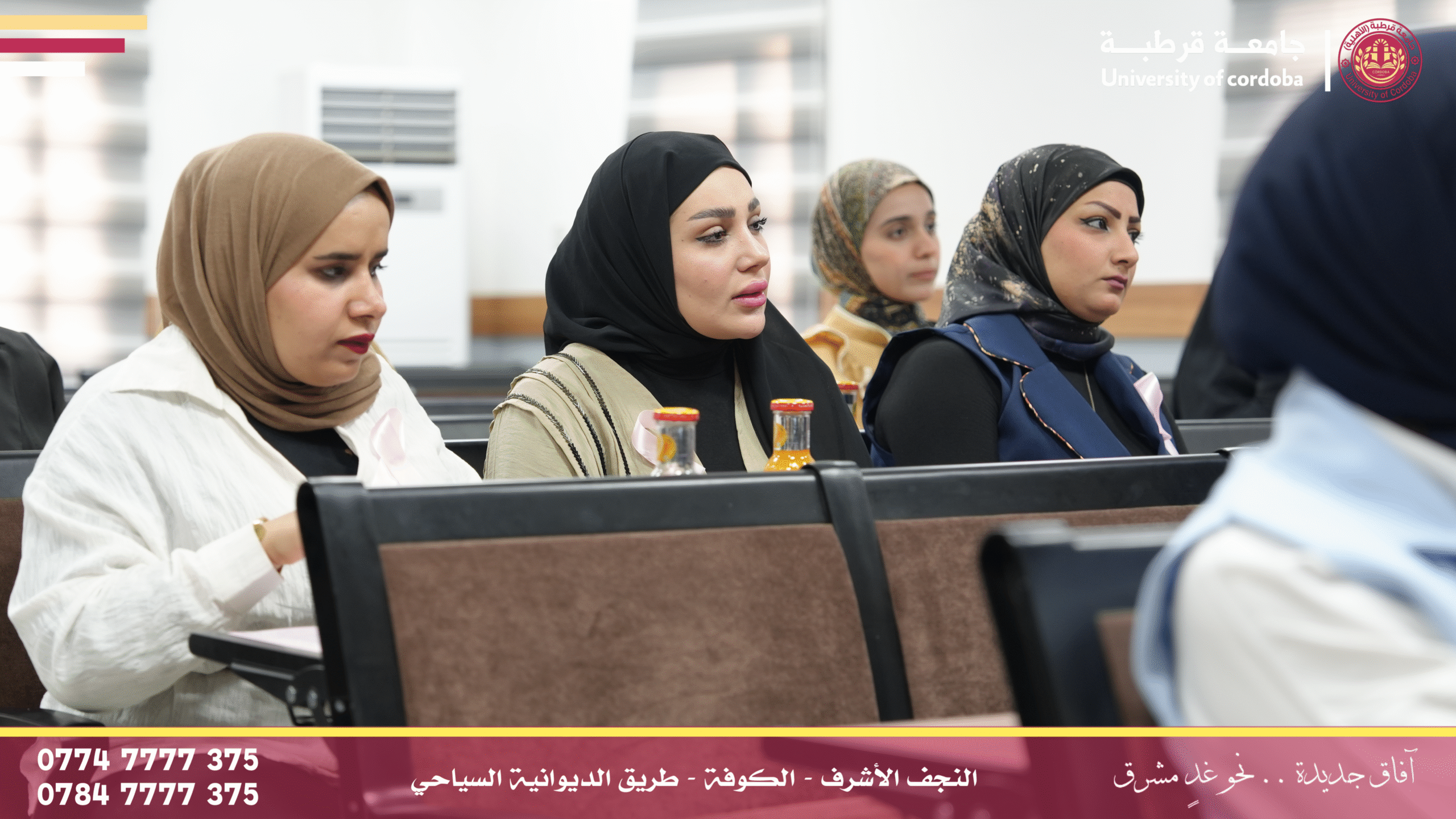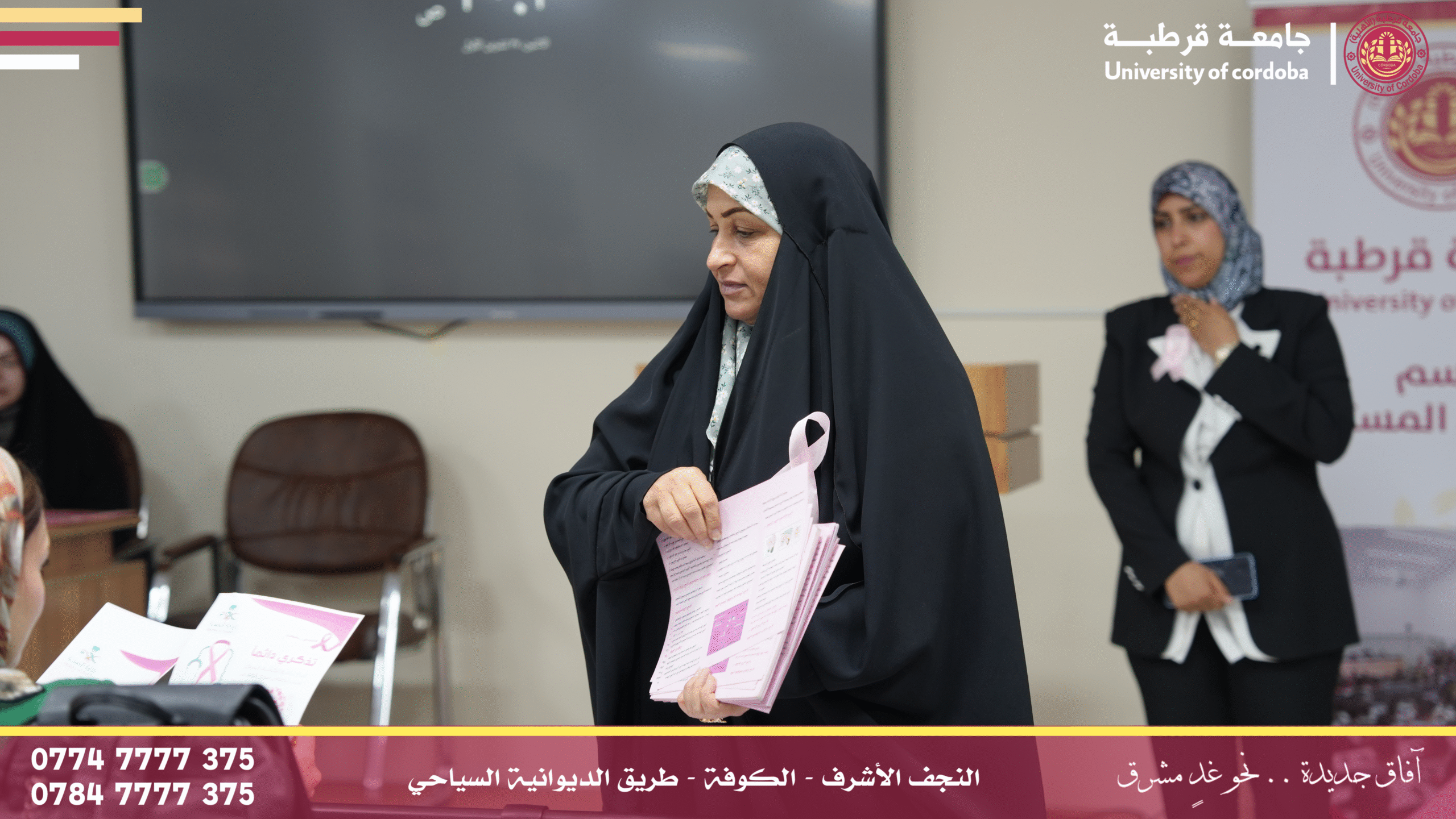 نظمت شعبة شؤون المرأة في جامعة قرطبة الأهلية ندوة علمية تثقيفية بعنوان “دور الفحص المبكر للوقاية من سرطان الثديي”، بالتعاون مع شعبة الإرشاد النفسي، وبرعاية الأستاذ الدكتور وسام صلاح عبدالحسين المحترم رئيس الجامعة .
