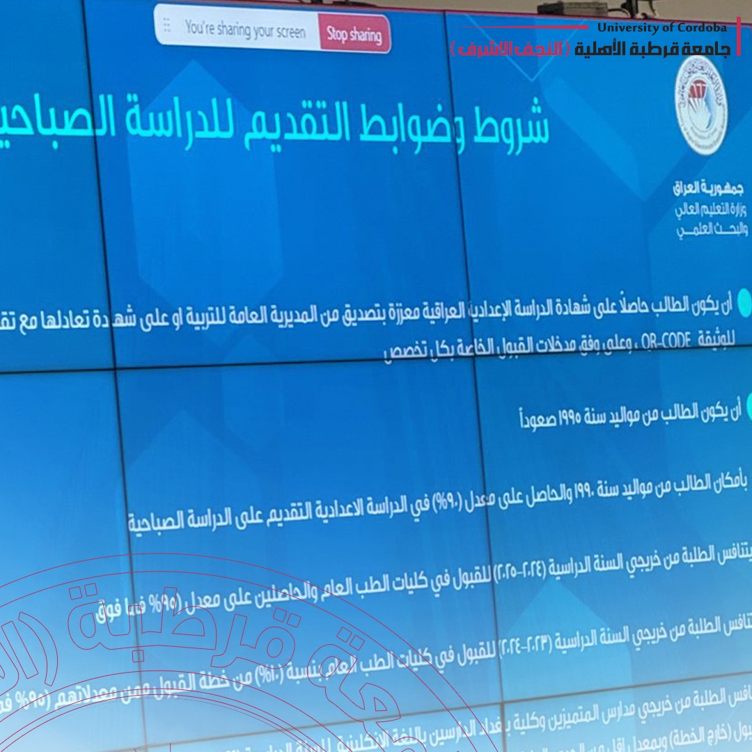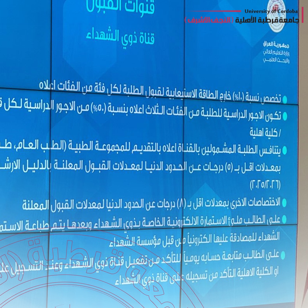 شاركت جامعة قرطبة الأهلية في الورشة التي أقيمت في الجامعة الأمريكية في بغداد بمناسبة إطلاق دليل الطالب للقبول في الجامعات والكليات الأهلية للعام الدراسي (2025–2026)، وذلك بحضور ممثلي وزارة التعليم العالي والبحث العلمي وعددٍ من مسؤولي التسجيل في الجامعات الأهلية.