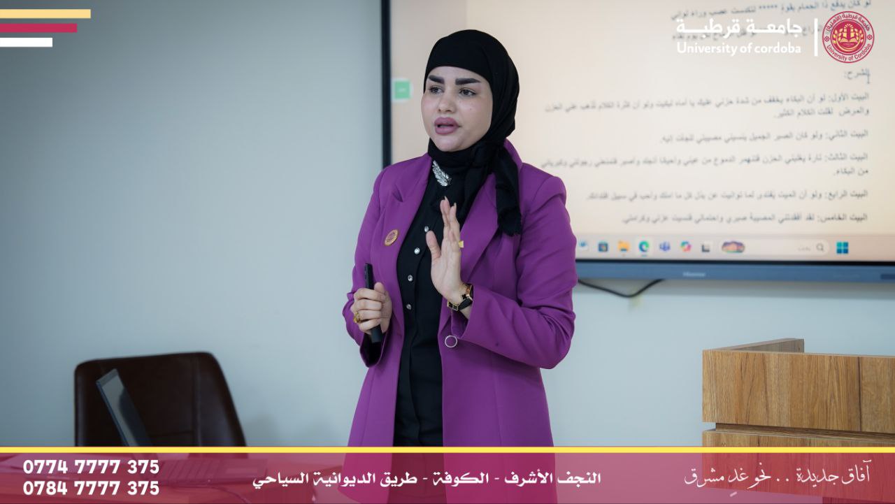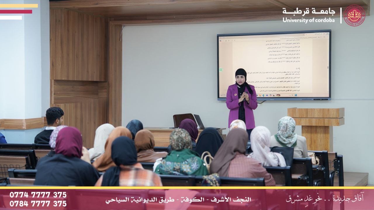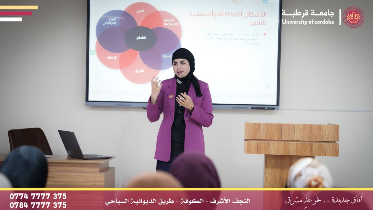أقامت شعبة شؤون المرأة في جامعة قرطبة ندوة علمية بعنوان (العدالة بين الجنسين ودورها في تعزيز التكافل الأسري) وذلك بحضور عدد من طلبة الجامعة