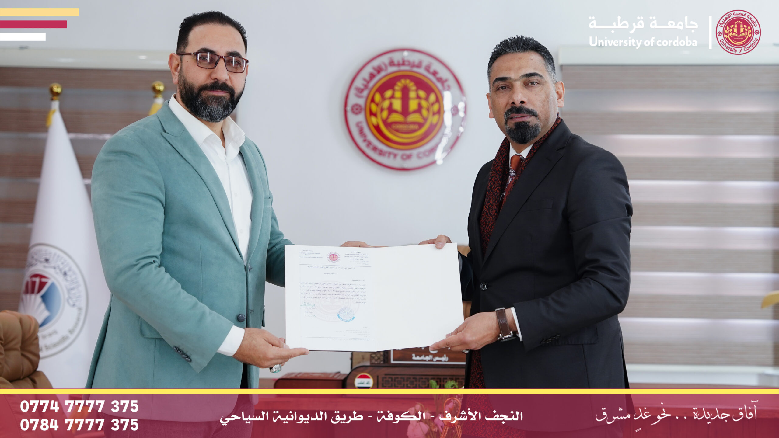 وفي ختام الندوة قدّم السيد رئيس الجامعة كتاب شكر وتقدير إلى السيد علي مجيد حسين تثميناً لجهوده المبذولة ومساهمته الفاعلة في إنجاح الندوة مؤكداً حرص جامعة قرطبة على تعزيز التعاون مع المؤسسات الحكومية ونشر ثقافة السلامة المجتمعية داخل الحرم الجامعي.