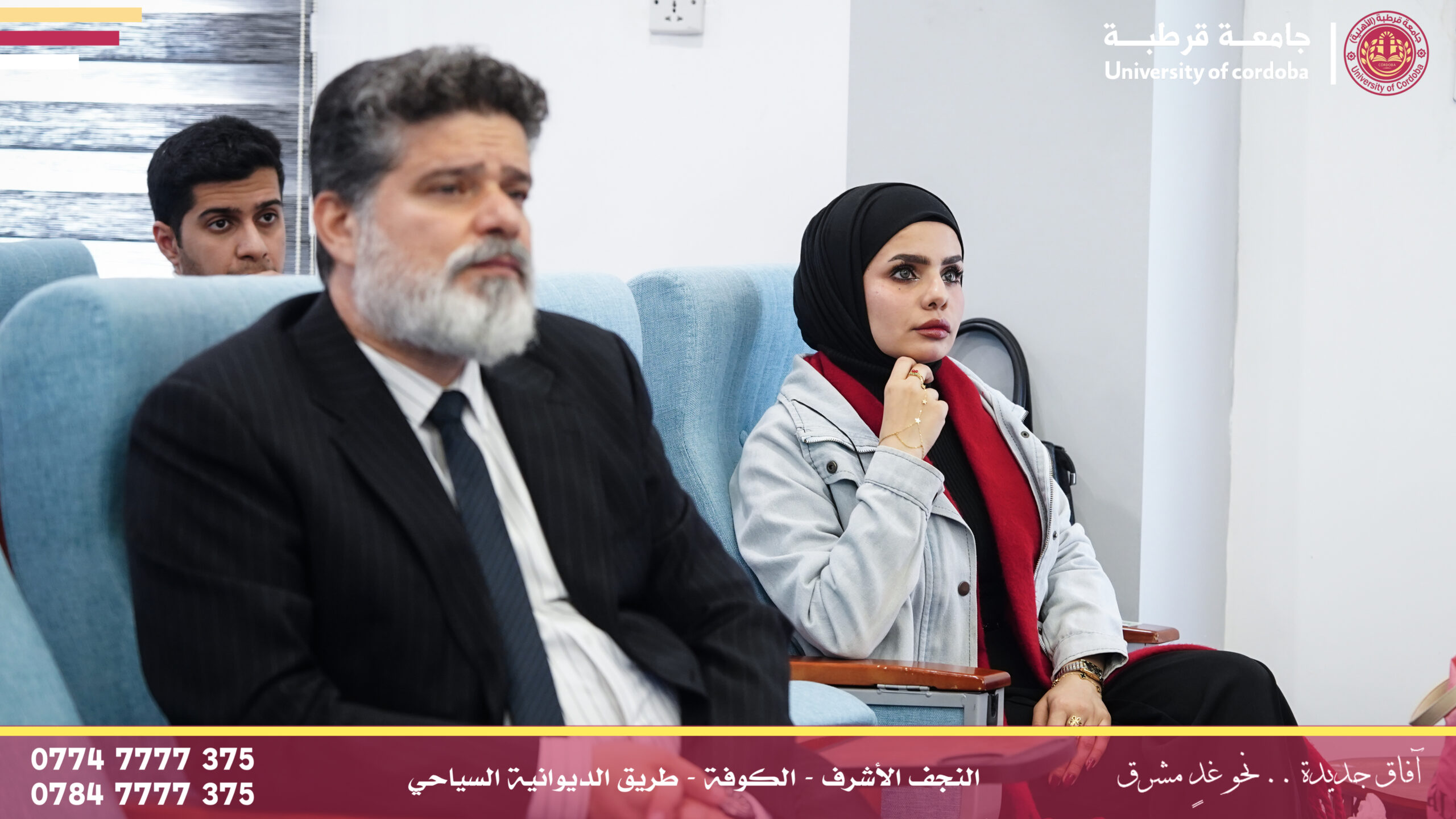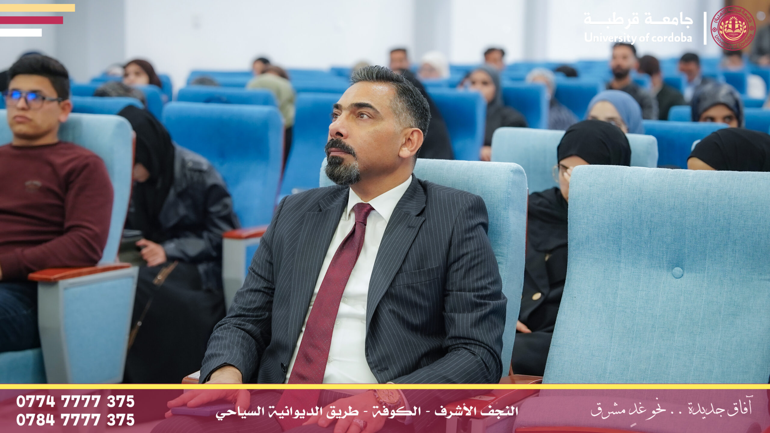 مساعد رئيس جامعة قرطبة للشؤون الإدارية والمالية يترأس لجنة إقرار عنوان بحث لطالب ماجستير في جامعة الكوفة