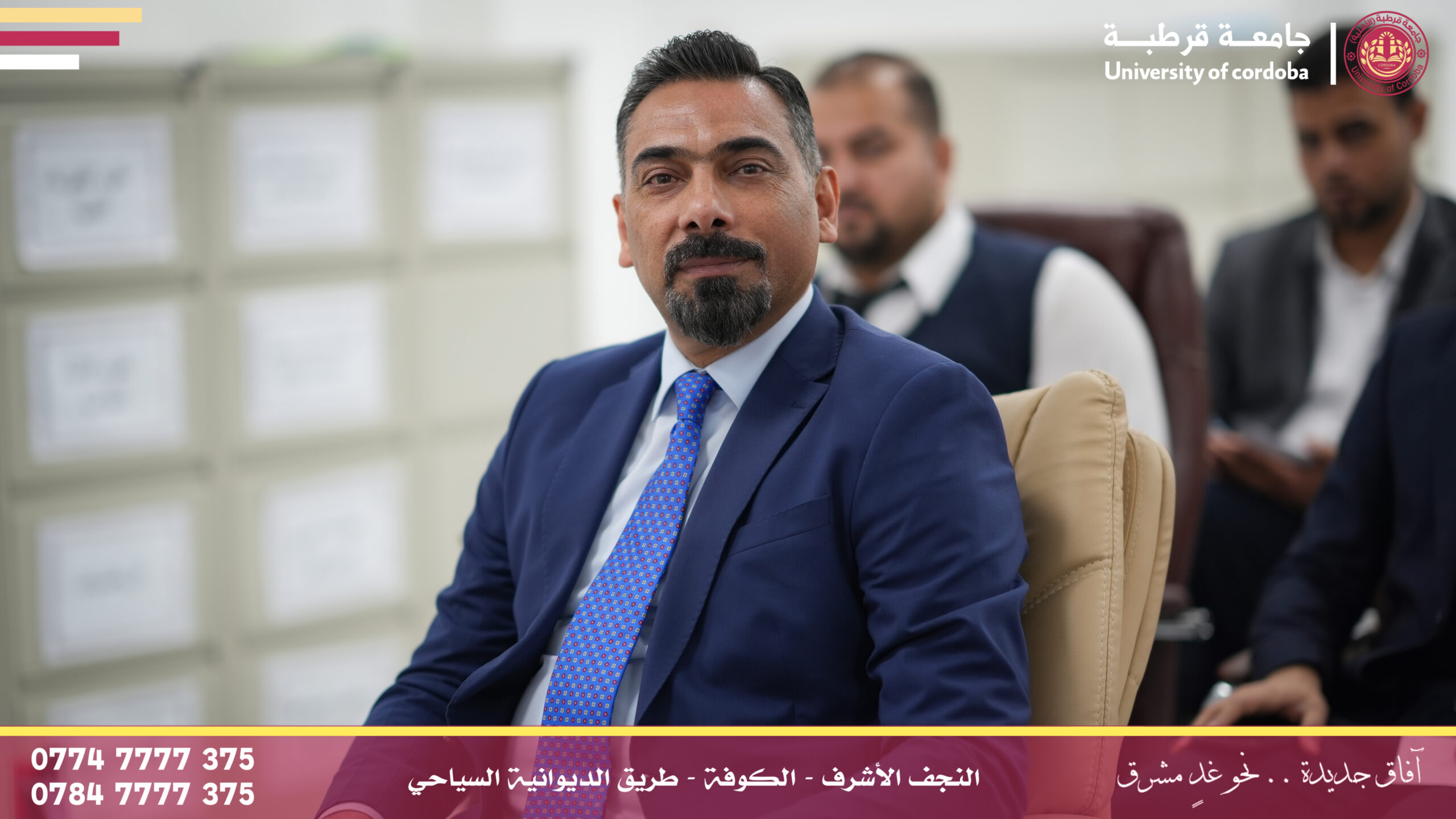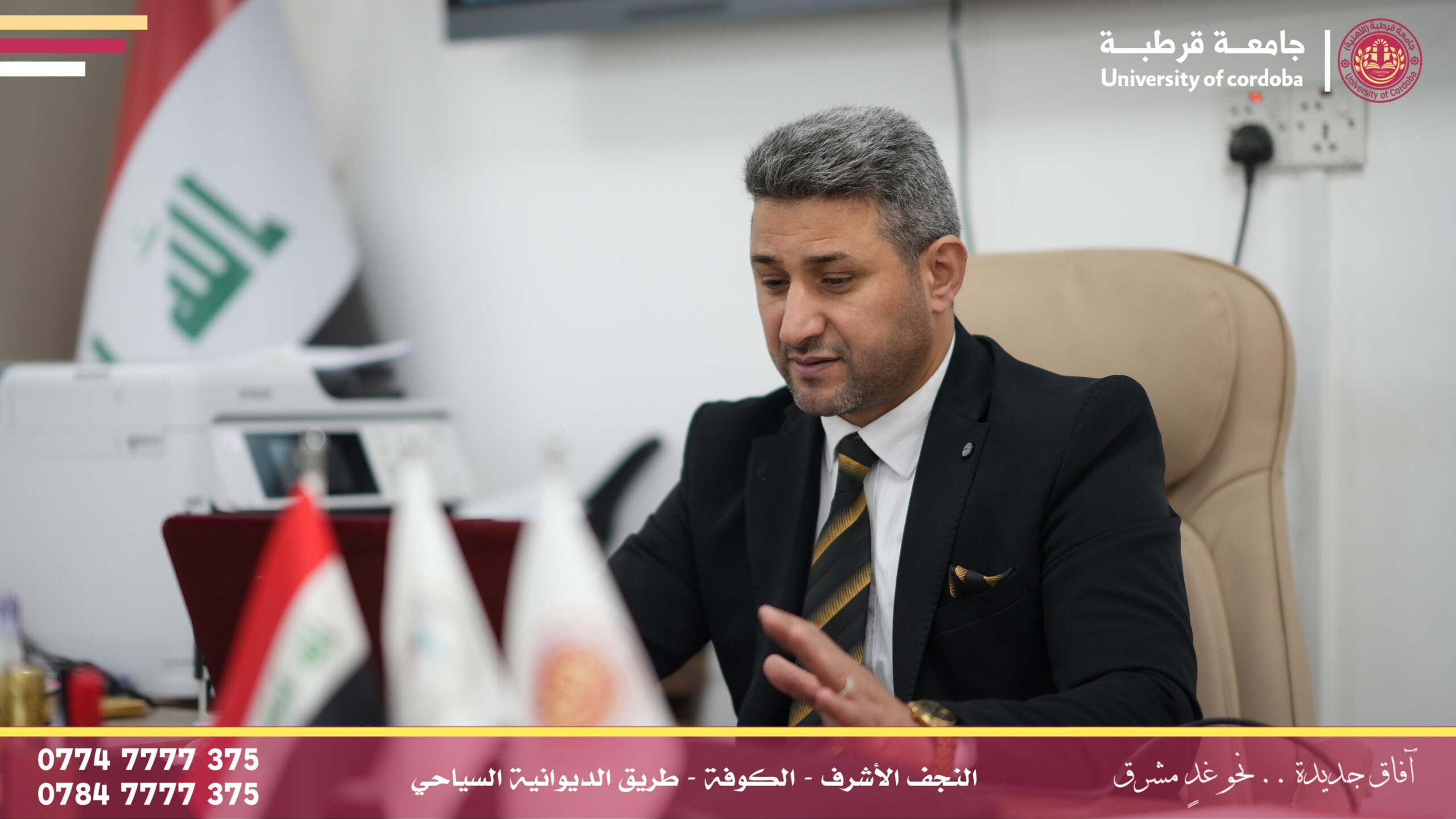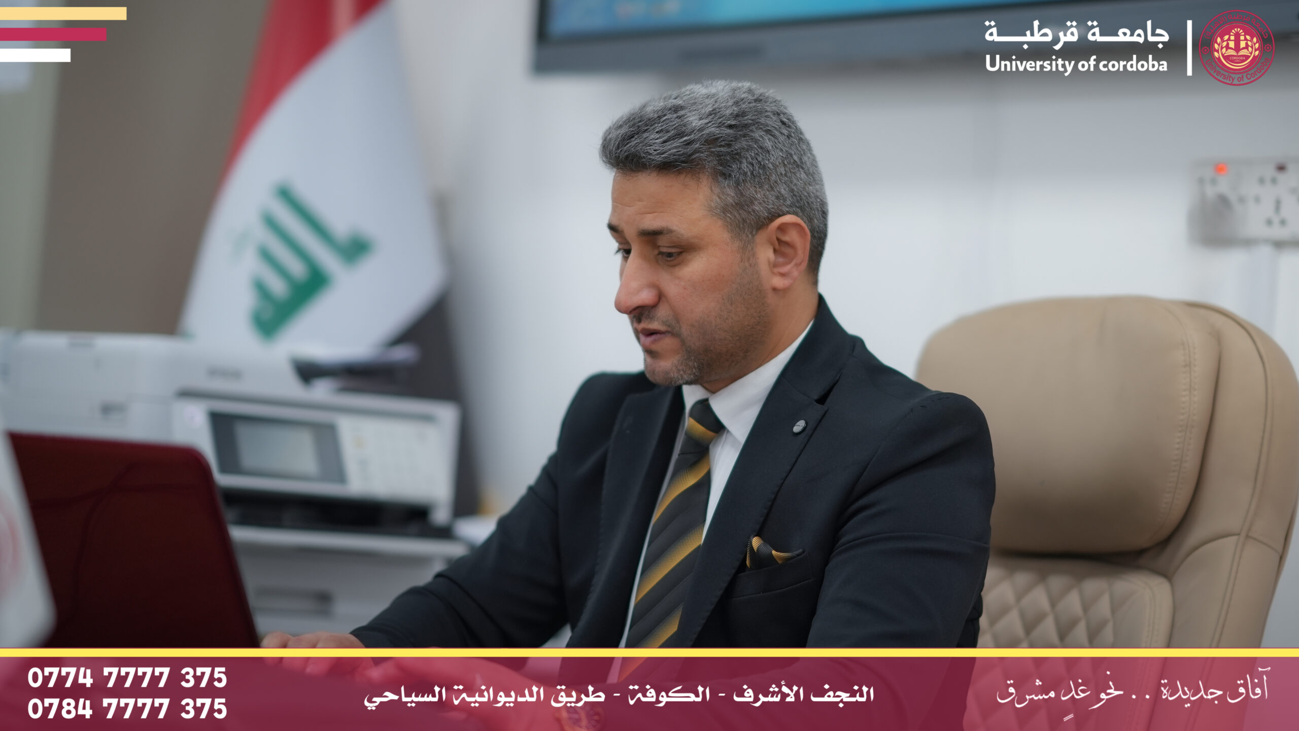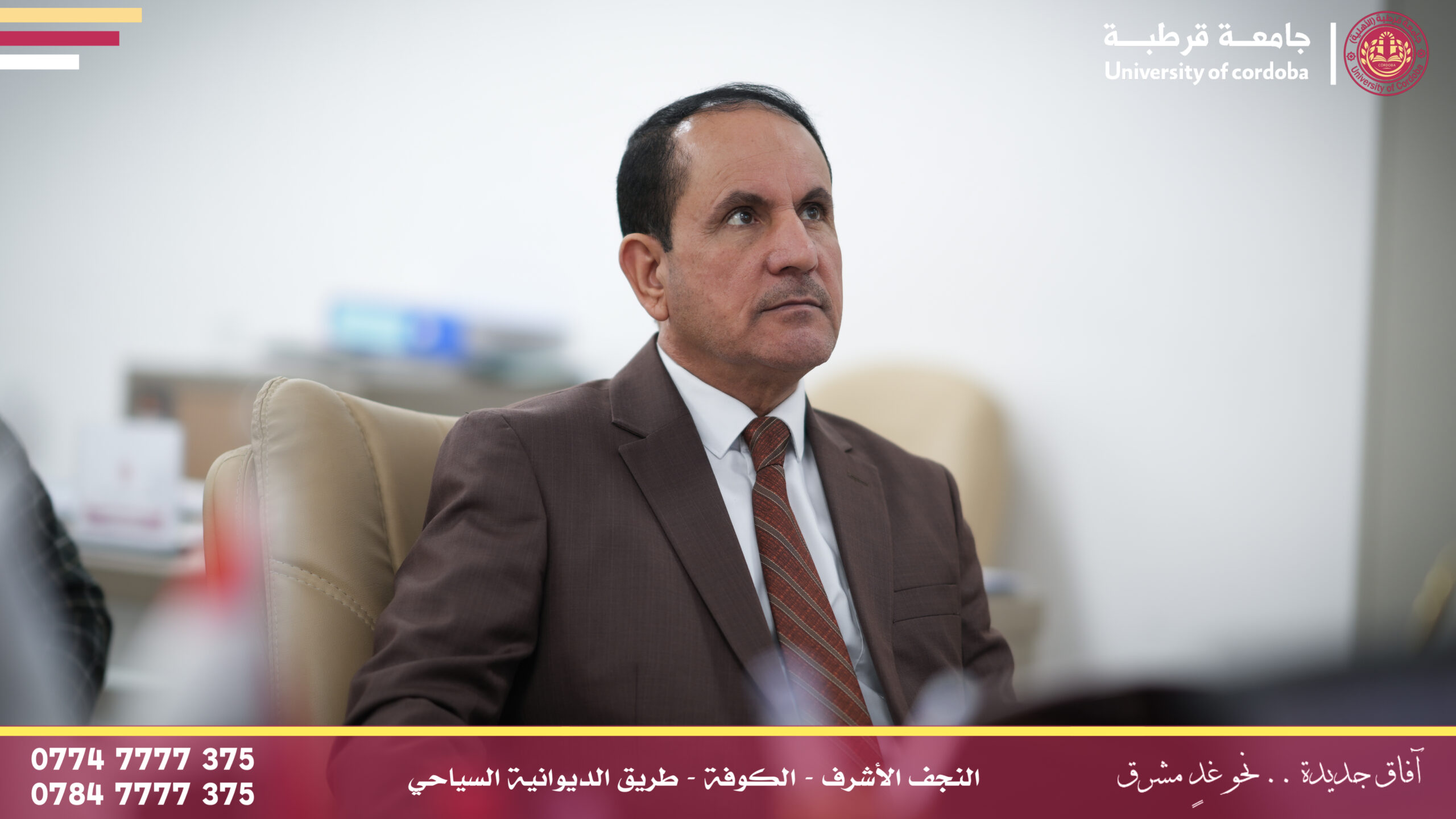 مساعد رئيس جامعة قرطبة للشؤون الإدارية والمالية يترأس لجنة إقرار عنوان بحث لطالب ماجستير في جامعة الكوفة