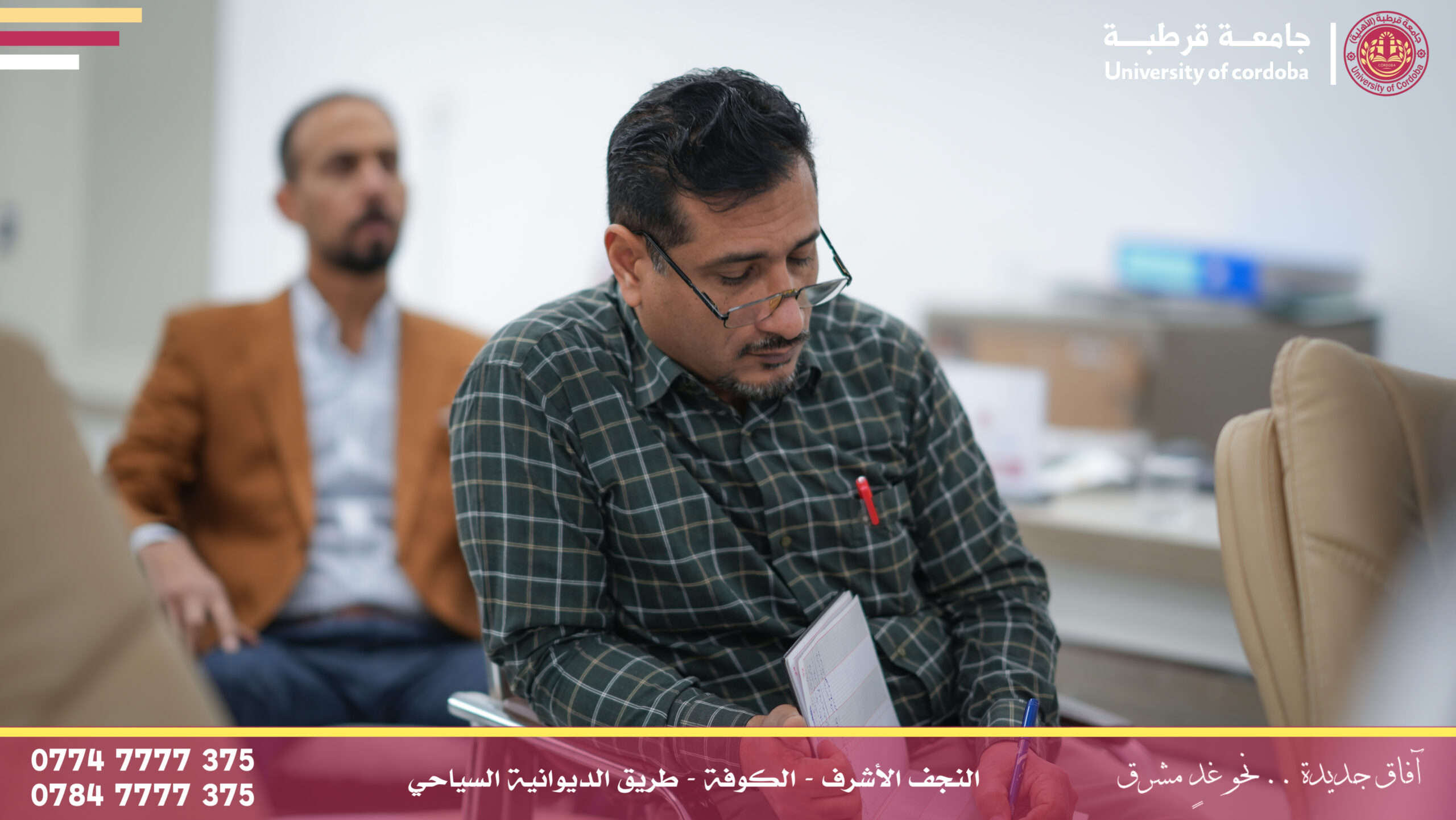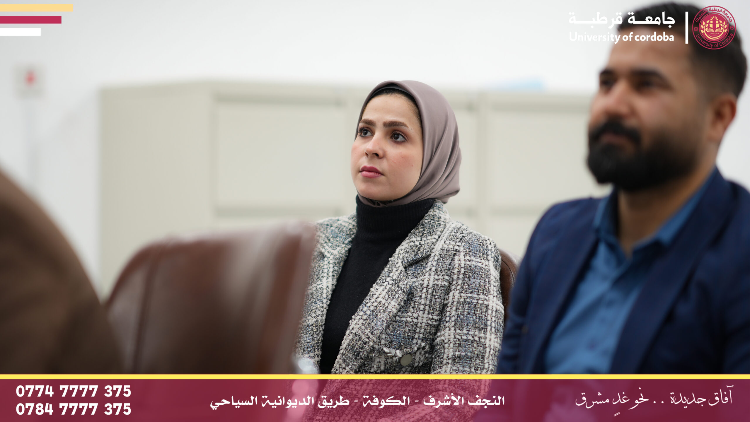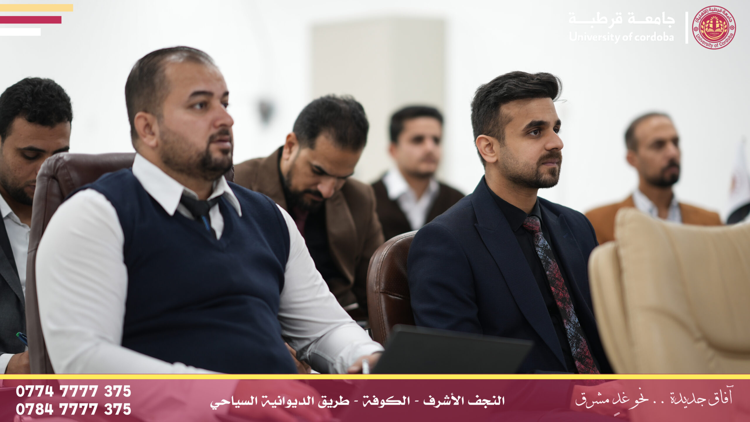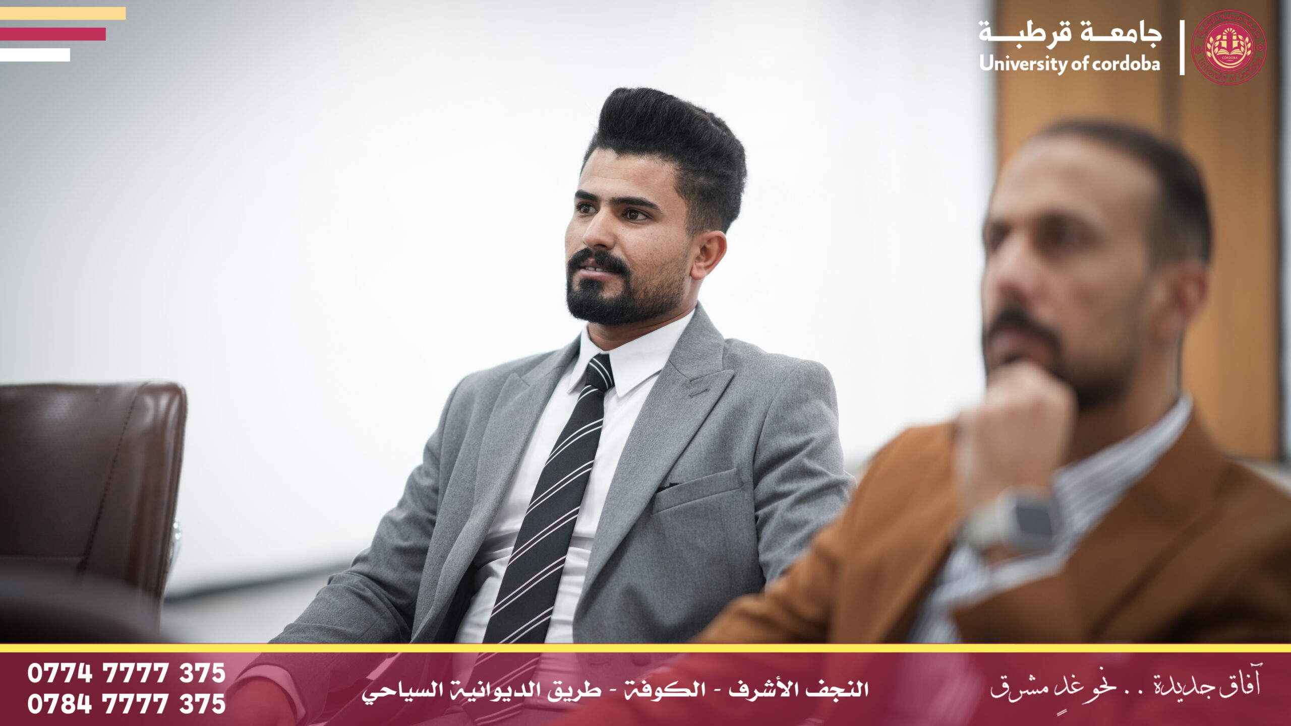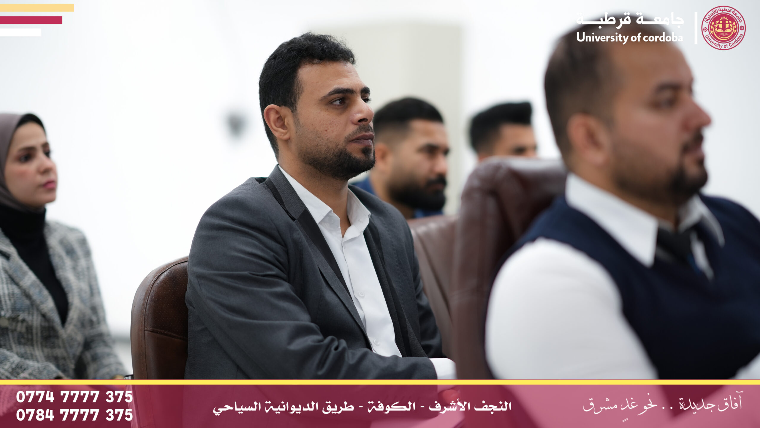 مساعد رئيس جامعة قرطبة للشؤون الإدارية والمالية يترأس لجنة إقرار عنوان بحث لطالب ماجستير في جامعة الكوفة