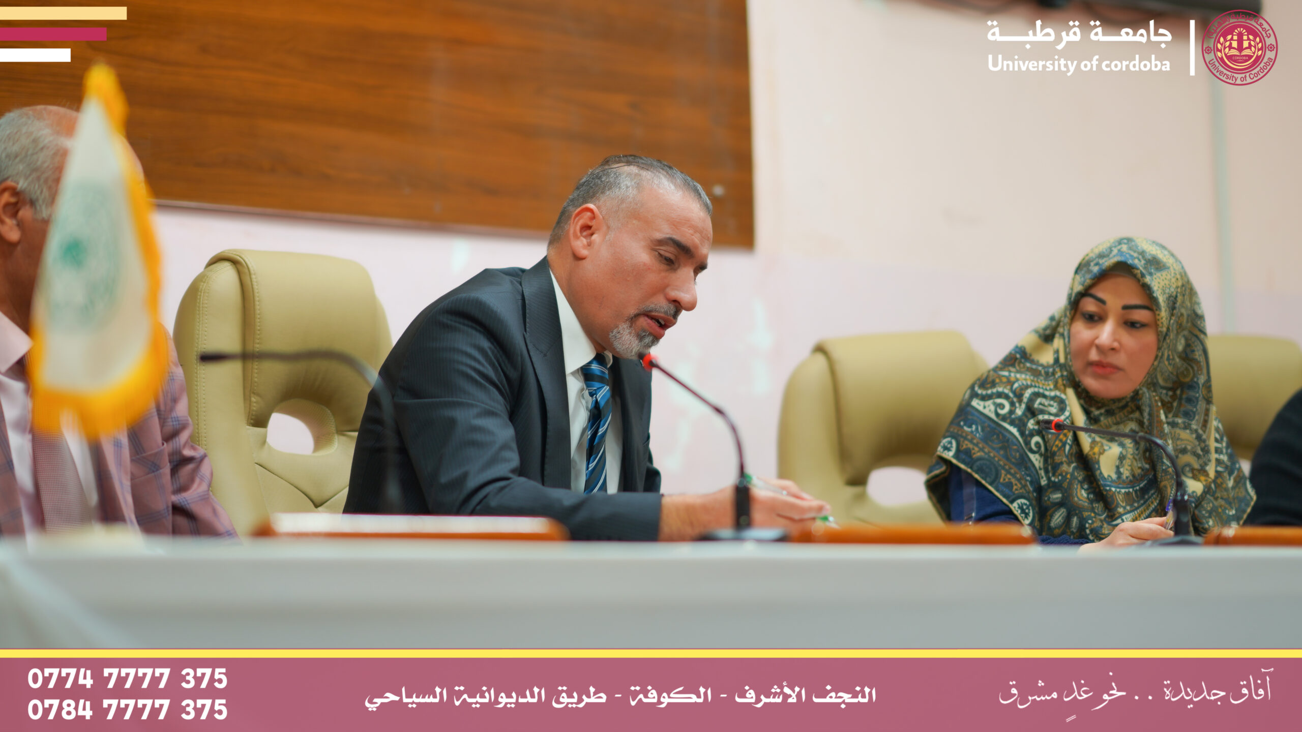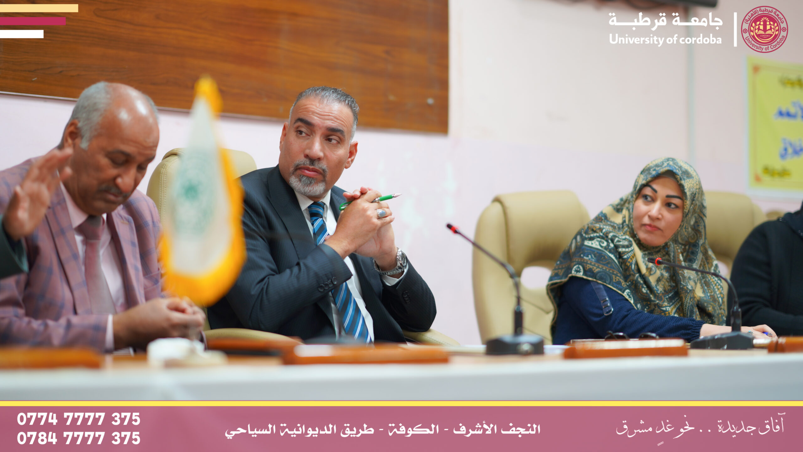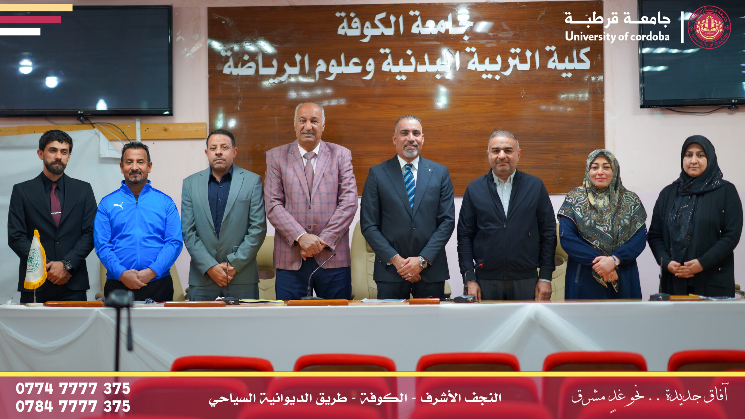 ترأس مساعد رئيس جامعة قرطبة للشؤون الإدارية والمالية الأستاذالدكتور فراس كسوب راشد المحترم لجنة إقرار عنوان بحث لطالب الماجستير في كلية التربية البدنية وعلوم الرياضة بجامعة الكوفة، وذلك ضمن إطار التعاون العلمي والأكاديمي بين الجامعات العراقية وتبادل الخبرات العلمية