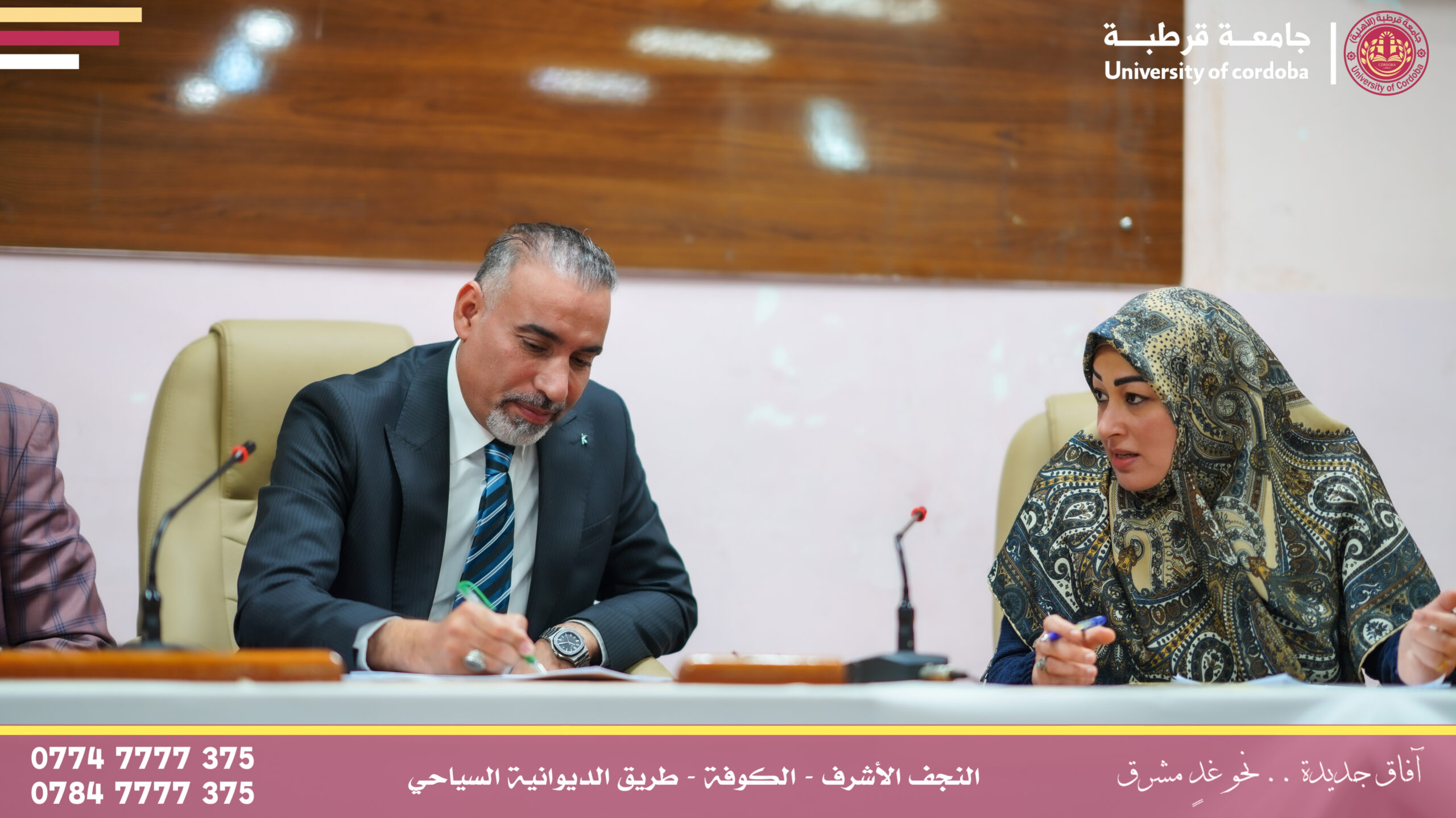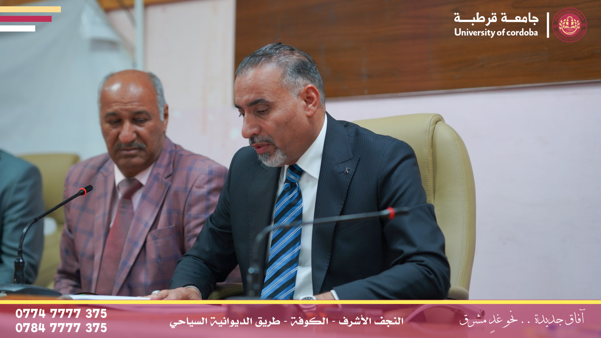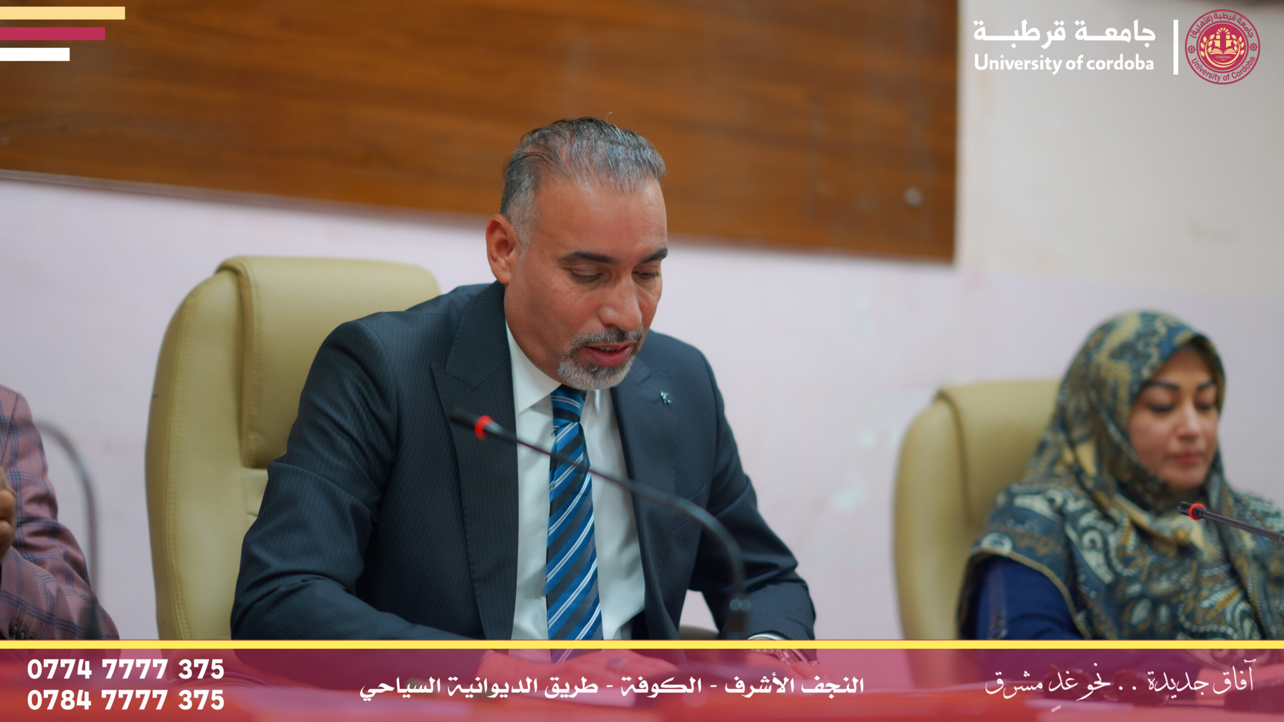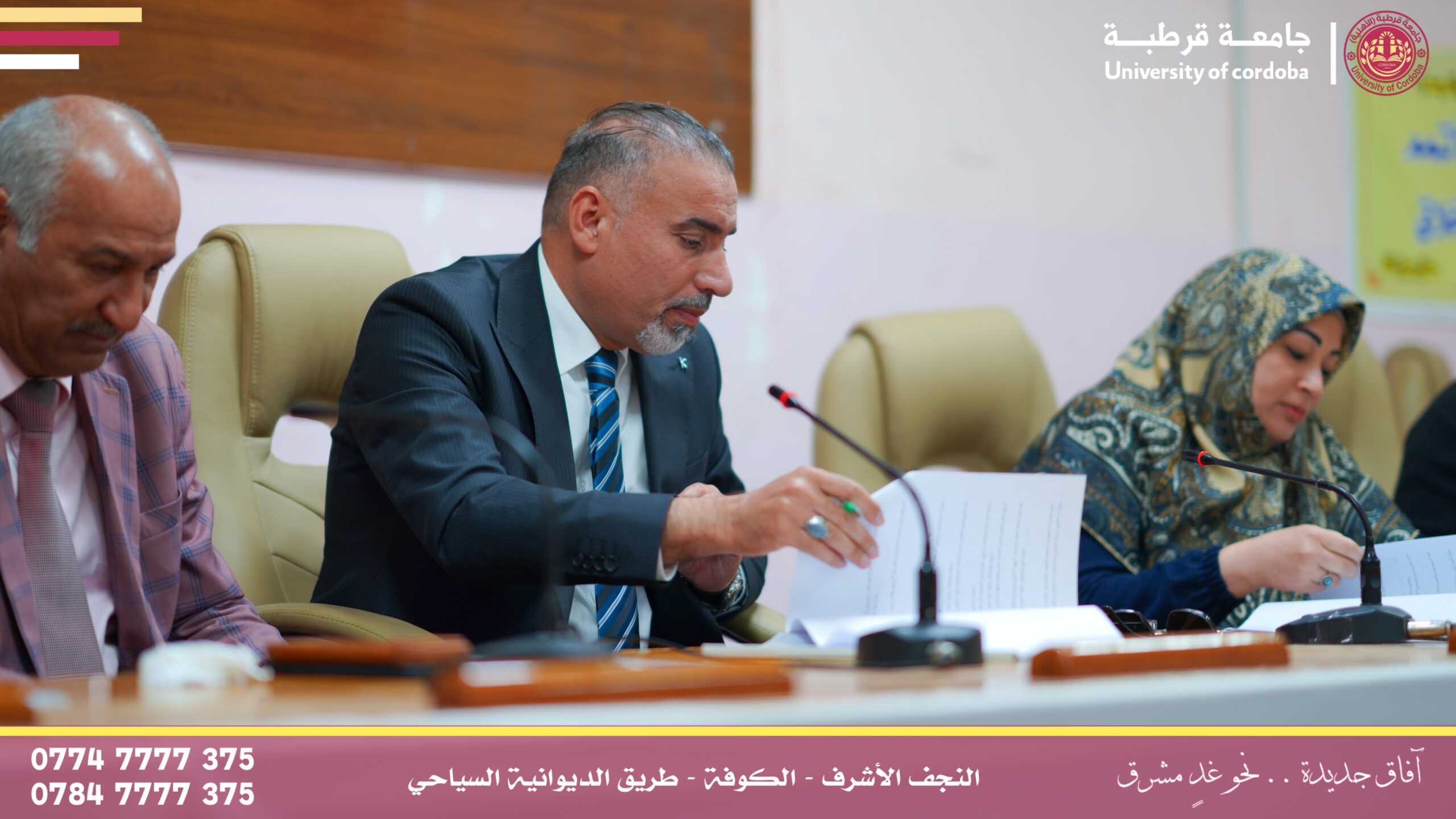 ترأس مساعد رئيس جامعة قرطبة للشؤون الإدارية والمالية الأستاذالدكتور فراس كسوب راشد المحترم لجنة إقرار عنوان بحث لطالب الماجستير في كلية التربية البدنية وعلوم الرياضة بجامعة الكوفة، وذلك ضمن إطار التعاون العلمي والأكاديمي بين الجامعات العراقية وتبادل الخبرات العلمية